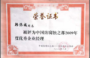 總經理韓濟成:一級建造師、高級工程師、中國腐蝕與防護學會團體協會理事、中國行政管理學會后勤管理研究會理事。被評為中國防腐之都優秀經理。一九七九年從事防腐保溫工程。三十年來,組織和領導各種防腐保溫工程幾百項,積累了豐富的施工技術和組織管理經驗。工作中一貫堅持重合同、守信用、講友情。愿與用戶精誠合作,共同發展防腐保溫事業,為國家經濟建設做出新的貢獻。
